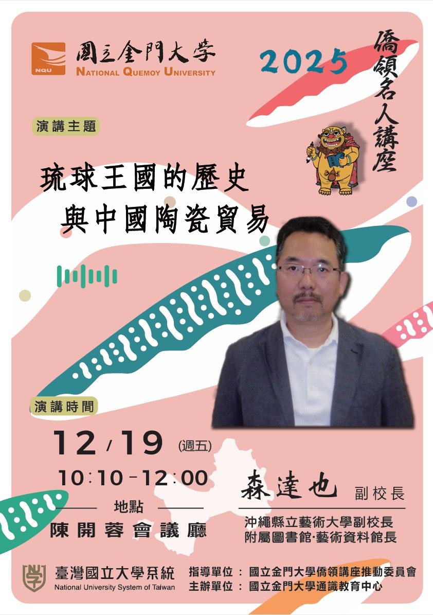 【國立金門大學】114/12/19(五)名人講座:琉球王國的歷史與中國陶瓷貿易