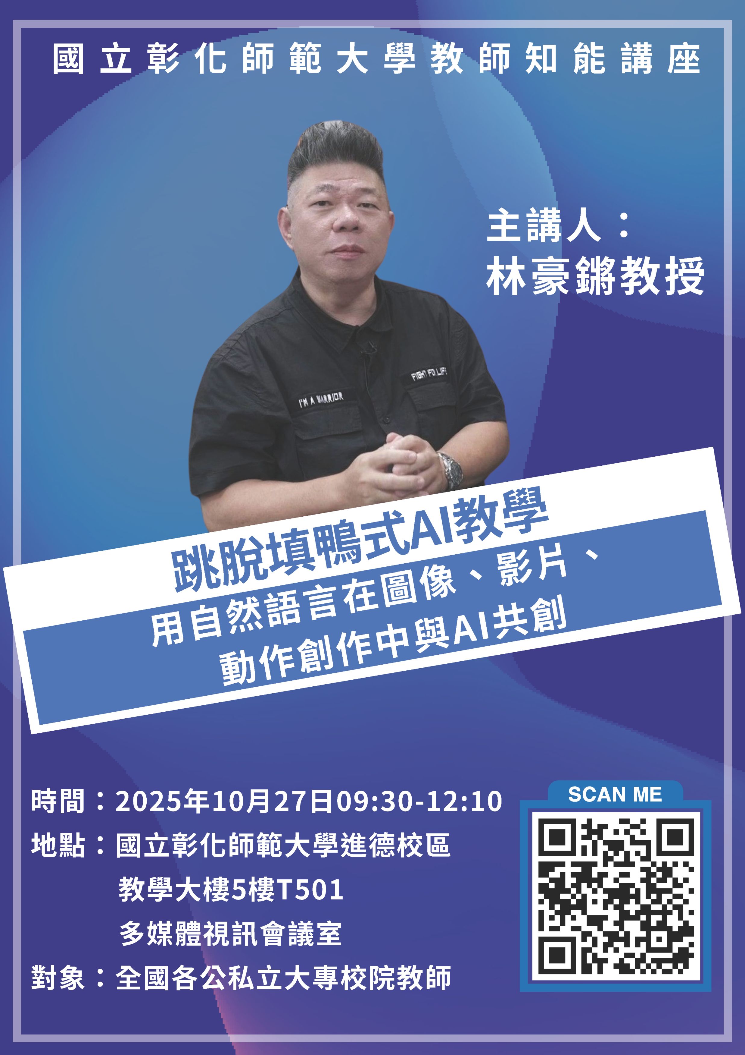【彰師大】10/27(一)跳脫填鴨式AI教學:用自然語言在圖像、影片、動作創作中與AI共創