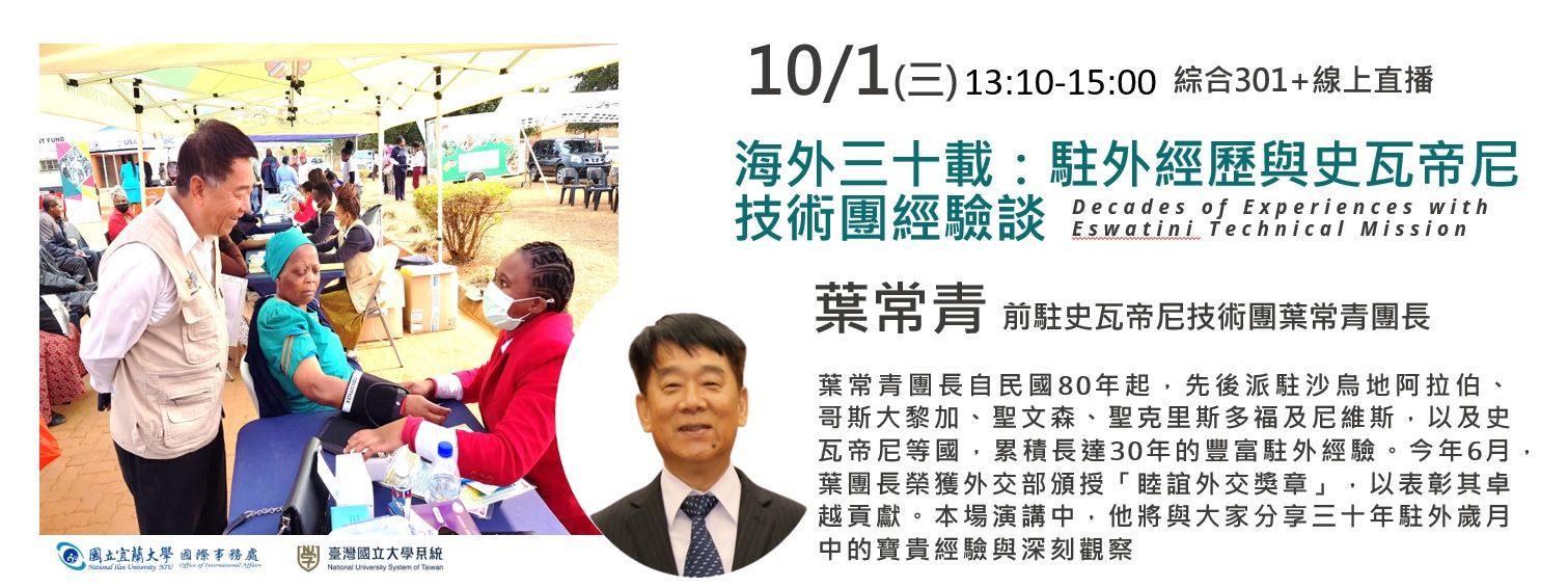 Since 1991, Former leader Chang-Ching Yeh has served in several countries, including Saudi Arabia, Costa Rica, and Eswatini, gaining 30 years of diplomatic experience. In June, he received the “Diplomatic Friendship Medal” from MOFA. In this lecture, he will share key insights from his three decades abroad.